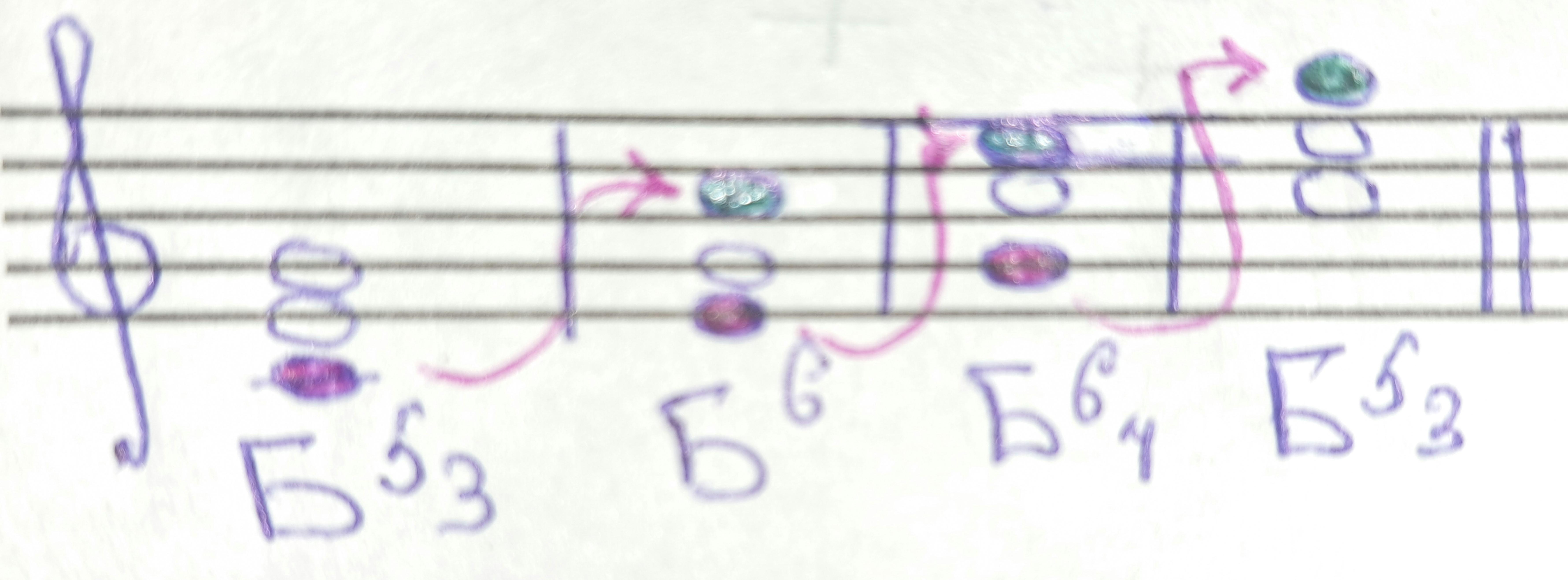 Б53—мажорное трезвучие. Б6 и Б64—его обращения.