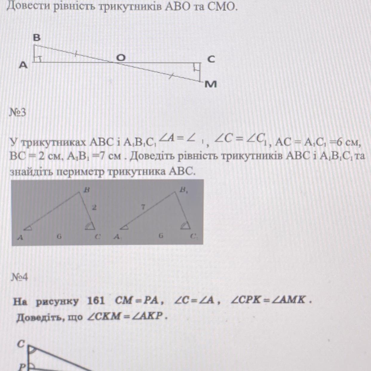 У трикутниках ABC і A,B,C. Кут А= Кут 1, кут С= кут С1, AC=A1C1=6 см. BC=2см. A1B1=7см. Доведіть рівність трикутників ABC і A1B1C1 та знайдіть периметр трикутника ABC