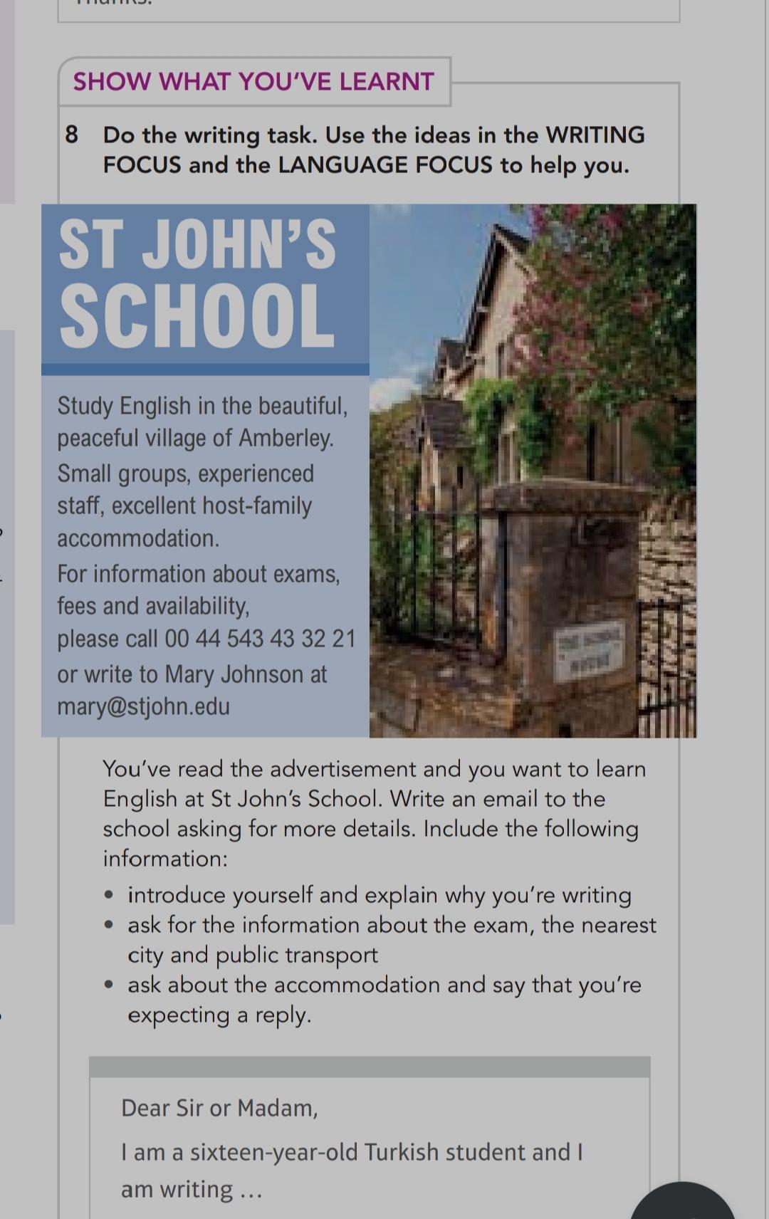 I am writing to inquire about the opportunity to study English at St John's School. As a sixteen-year-old Turkish student, I am very interested in improving my English language skills and believe that studying at your school would be an excellent opportunity for me.