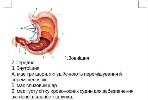 1) зовнишня - В ; 2) средняя - Б ; 3) внутренняя - А.