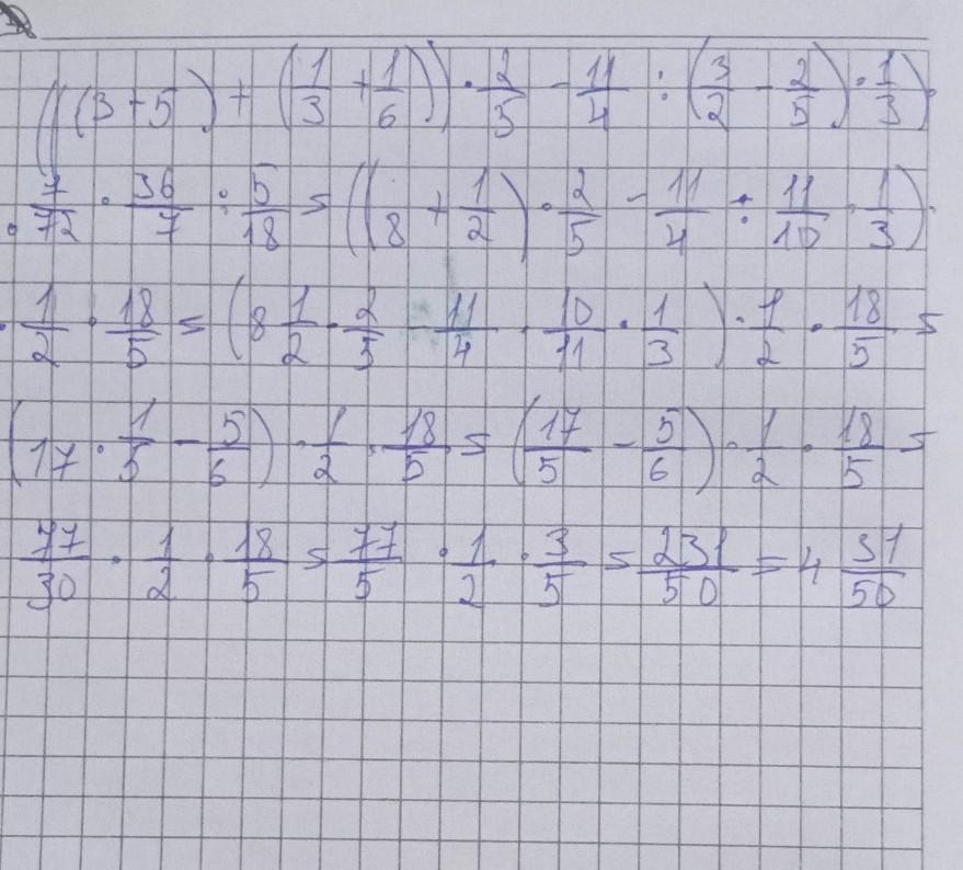 1) (3 1/3+5 1/6)•2/4-3/4:(1 1/2-2/5)=4 3/6