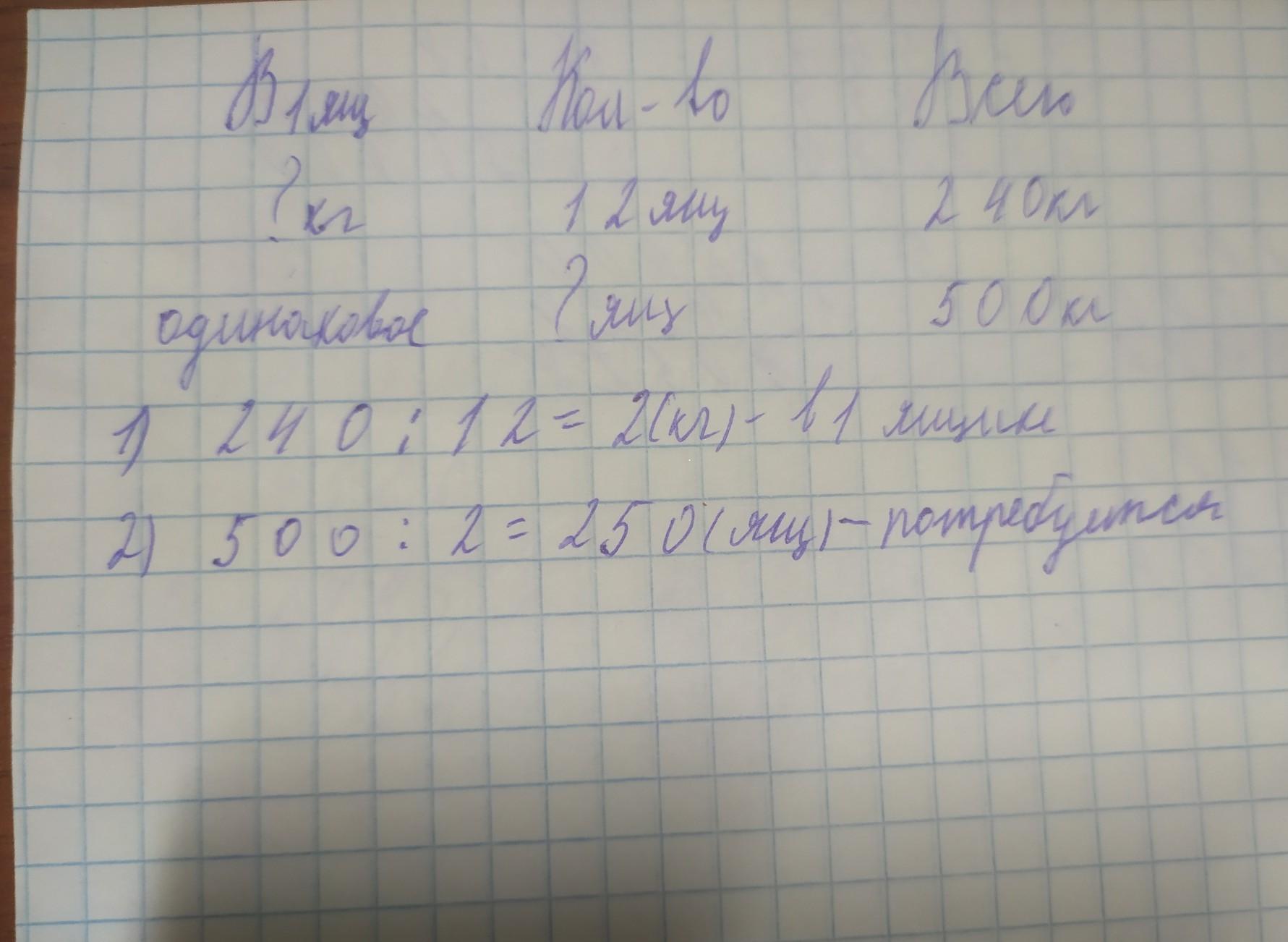 в 12 ящиках лежало 240 кг апельсинов Сколько потребуется таких ящиков чтобы разложить 500 кг апельсинов