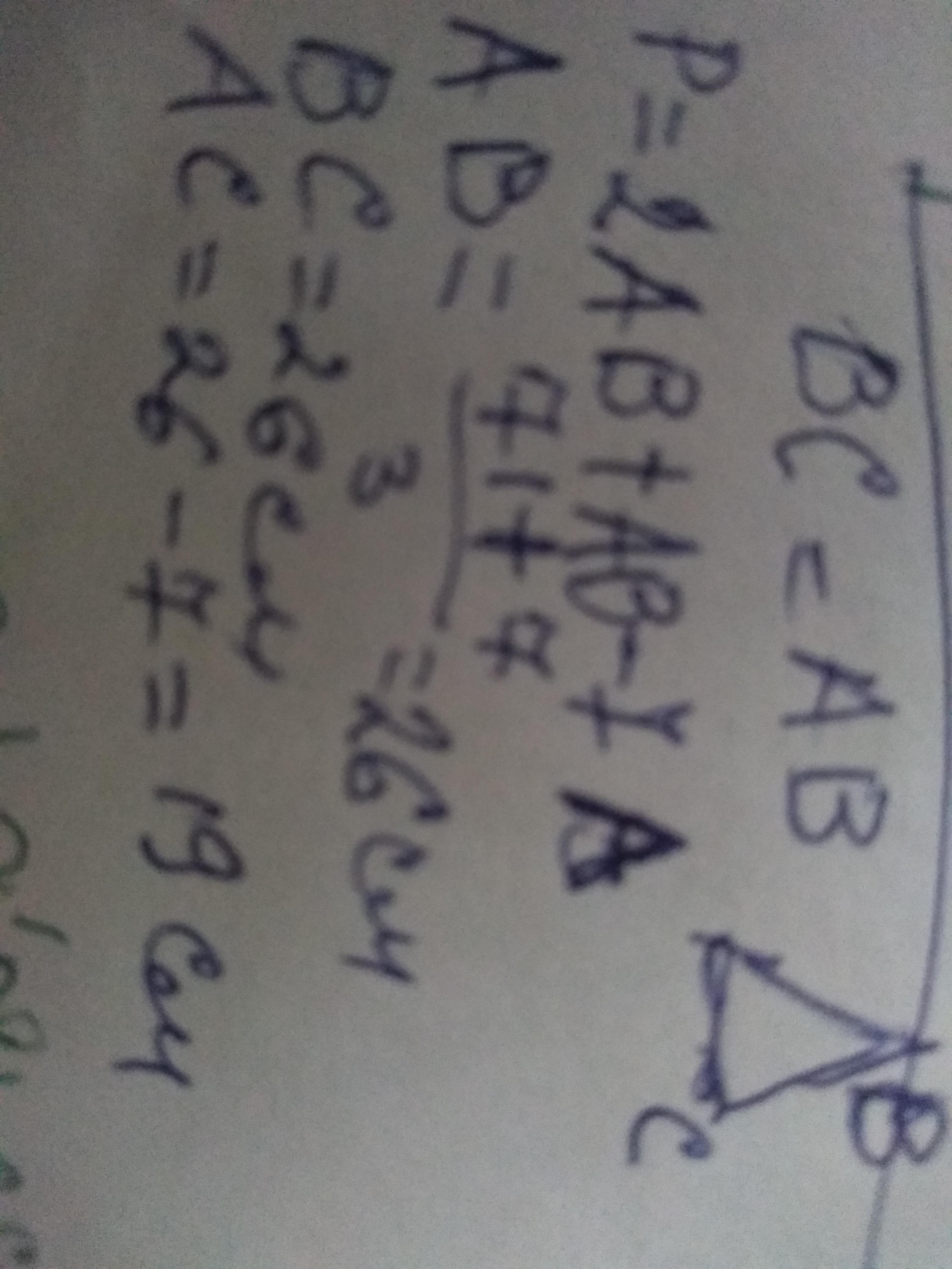 Перевод: в треугольнике ABC известно, что угол А = угол С. Найдите стороны треугольника если периметр равен 71 см, а сторонняя АС на 7 см меньше стороны ВС. даю 15 баллов