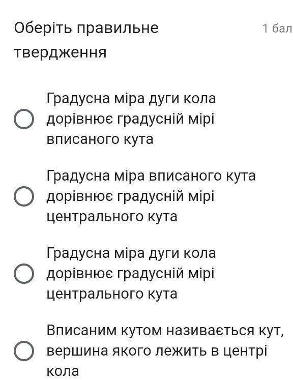 градусная мера дуги окружности равна градусной мере центрльного угла.