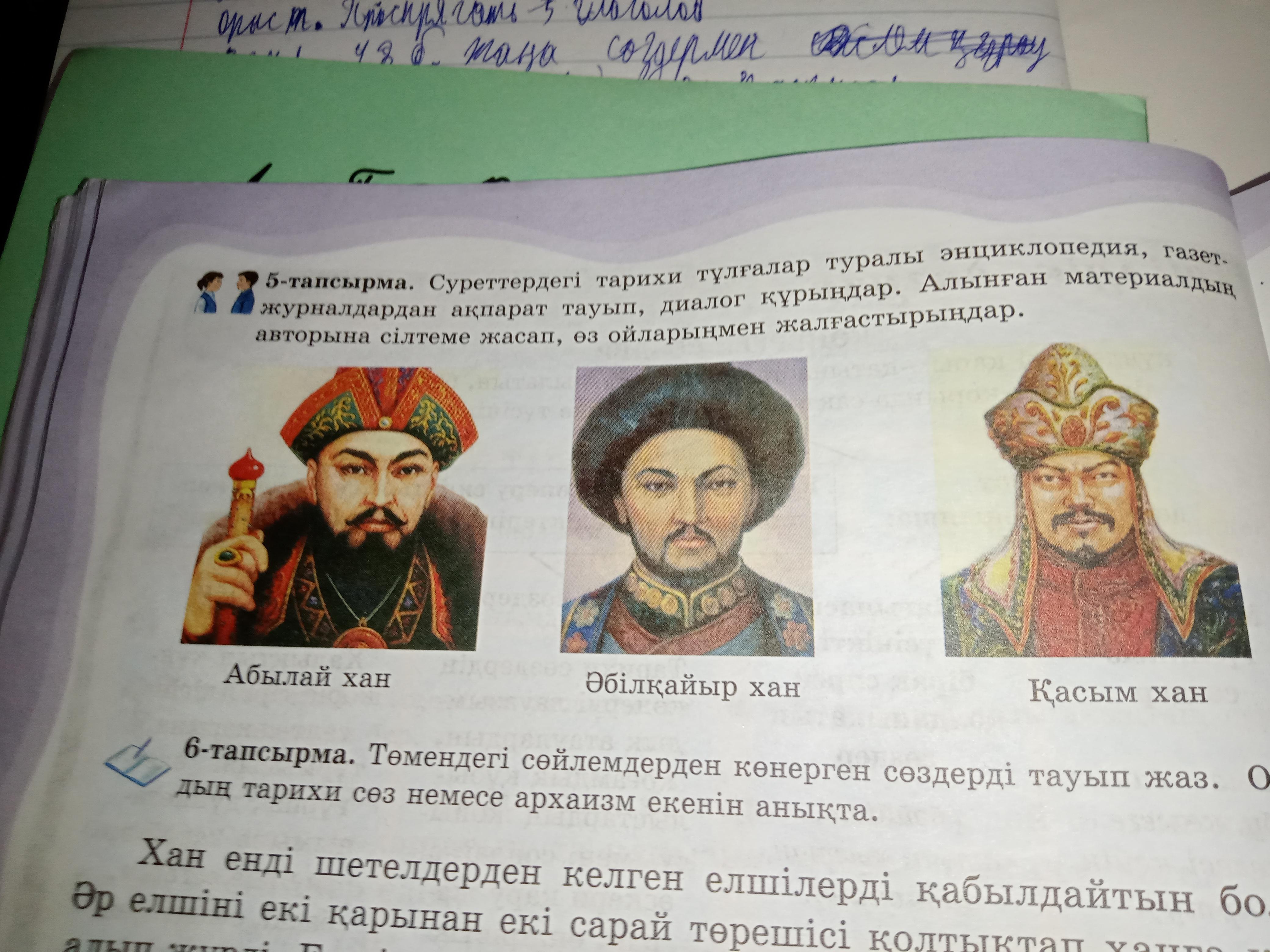 Суреттегі тарихи тұлғалар туралы энциклопедия, газет-журналдардан ақпарат тауып, диалог құрыңдар.