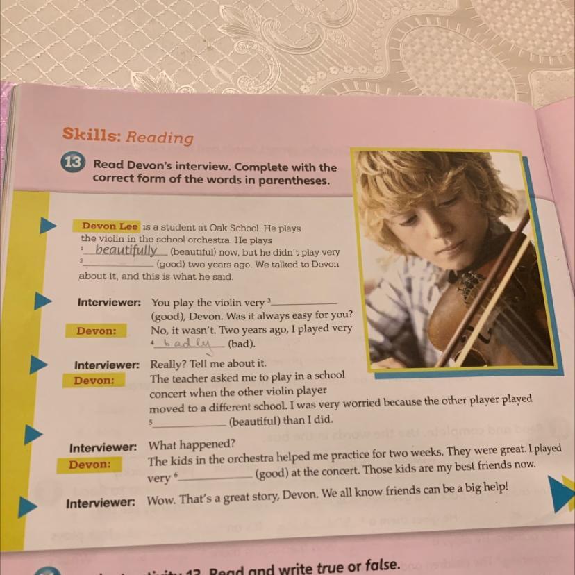 Devon Lee is a student at Oak School. He plays the violin in the school orchestra. He plays
