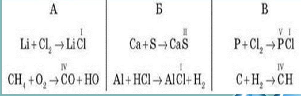 Лови помилку. Вкажіть, у яких випадках у Всіх хімічних рівняннях коефіцієнти розставлені непарвильно