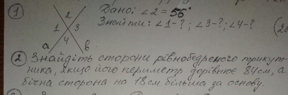 ∠1=∠3=180-56=124° за властивістю суміжних кутів.