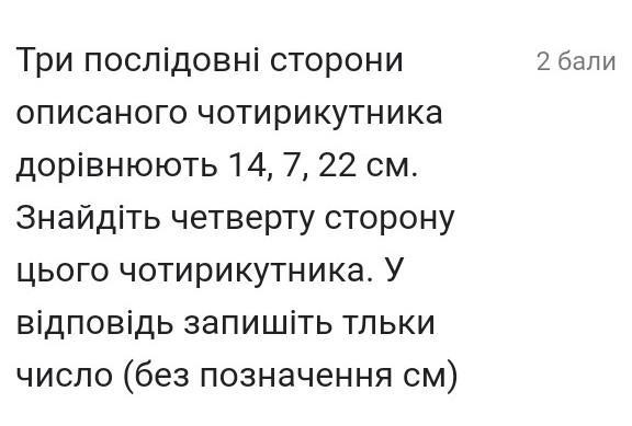 Неизвестная сторона данного четврёхугольника равна 29 см.
