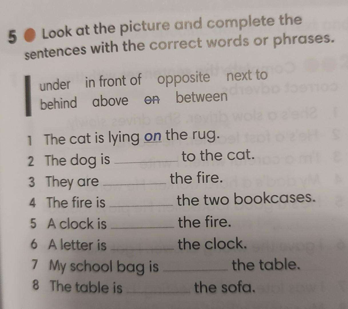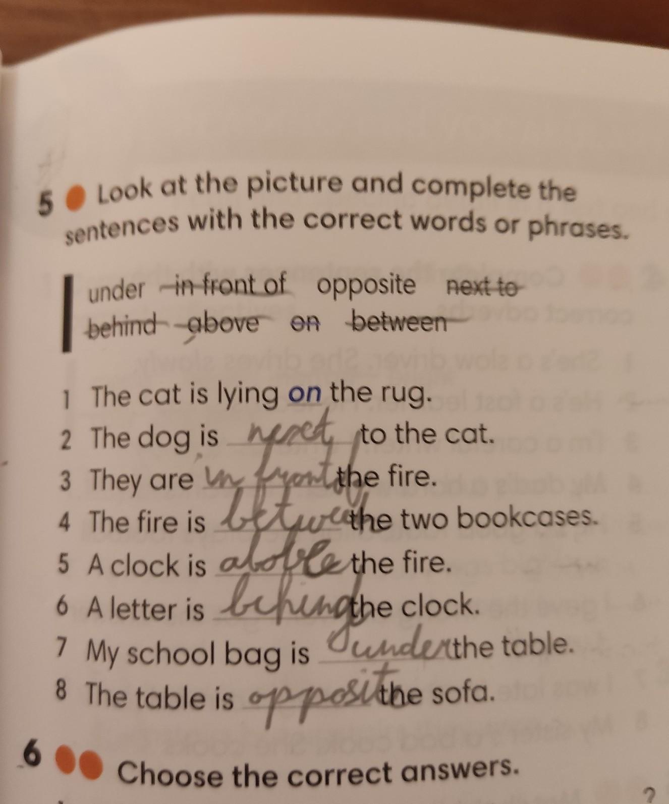 а ок (в мене така сама книжка). 1.next. 2.in front of. 3. between. 4. above. 5. behind. 6. under. 7.oppositr