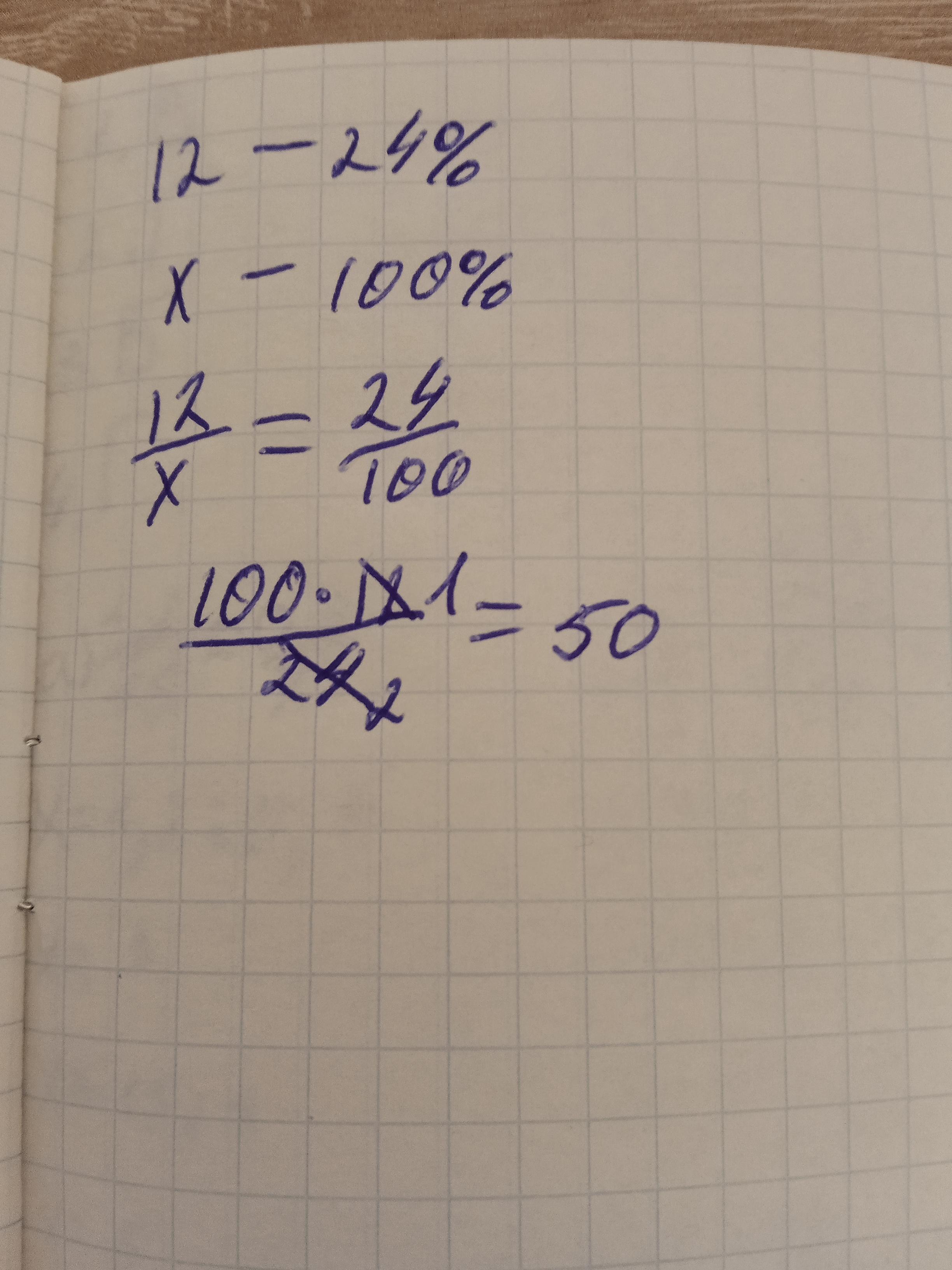 50-12=36(кількість прикрас що треба ще зробити щоб було 50шт(100%))