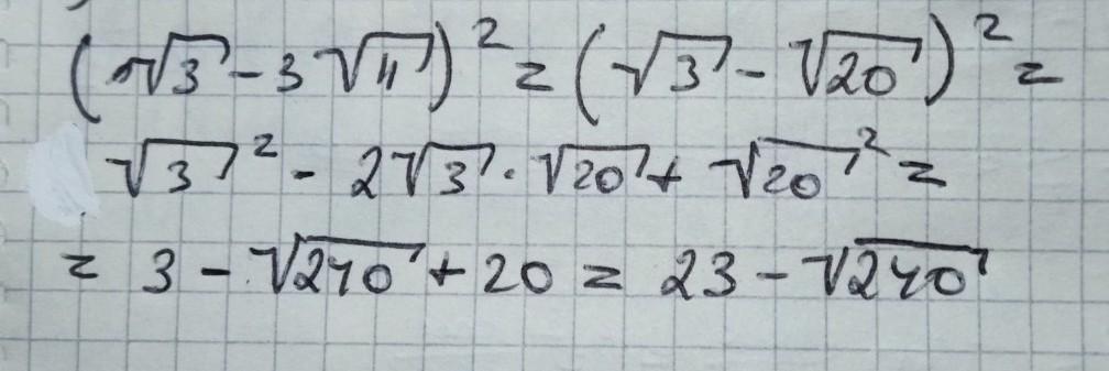 (√3-3√11)^2 =(√3-√20)^2=√3^2-2√3*√20+√20^2) = 3-√240+20 = 23-√240