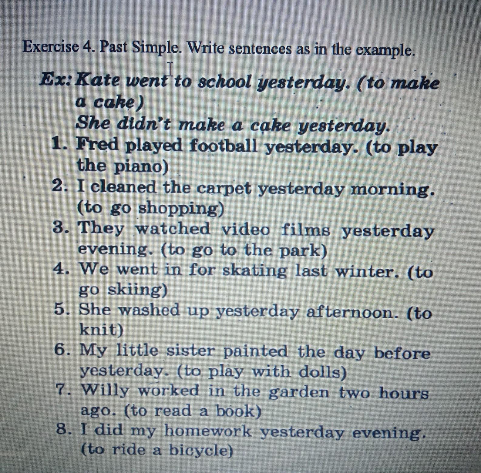 8.I don't ride a bicycle yesterday evening.