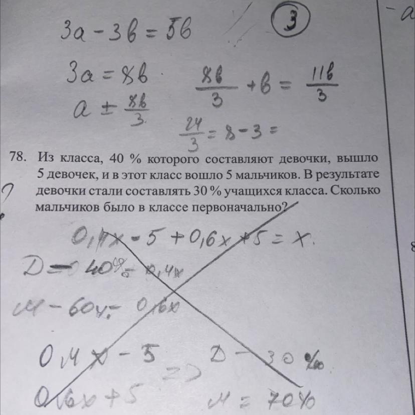40%-30%=10% Это значит, что 5 девочек - 10 % от класса