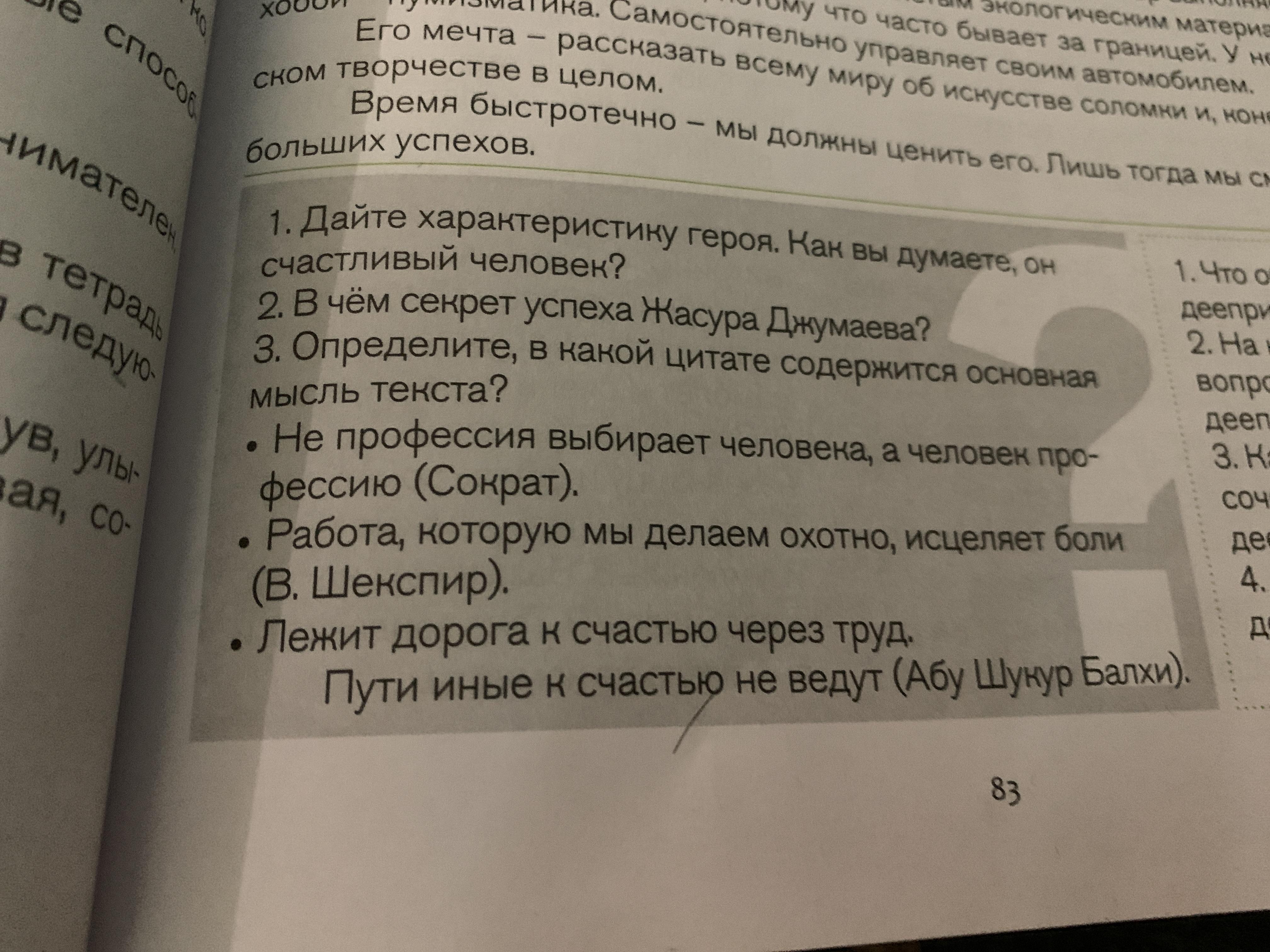 Цитаты:1.Сократ имел ввиду что люди вольны делать то что хотят. 2.Шекспир говорит о том что дело от которого мы получаем удовольствие, исцеляет нас (радость,удовольствие от процесса) 3. В процессе труда, только когда достигаем цели мы видим наш результат, и это наше счастье.