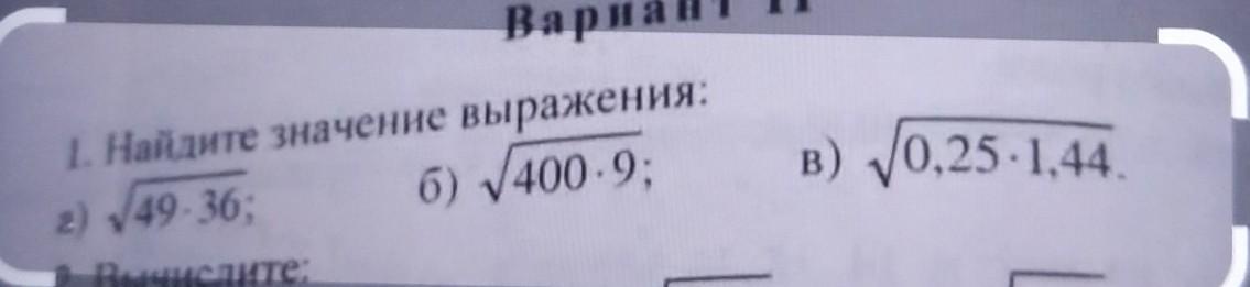 Пошаговое объяснение: корень из 49 = 7 ; корень из 36 = 6 ; 7×6 = 42