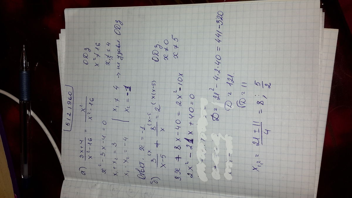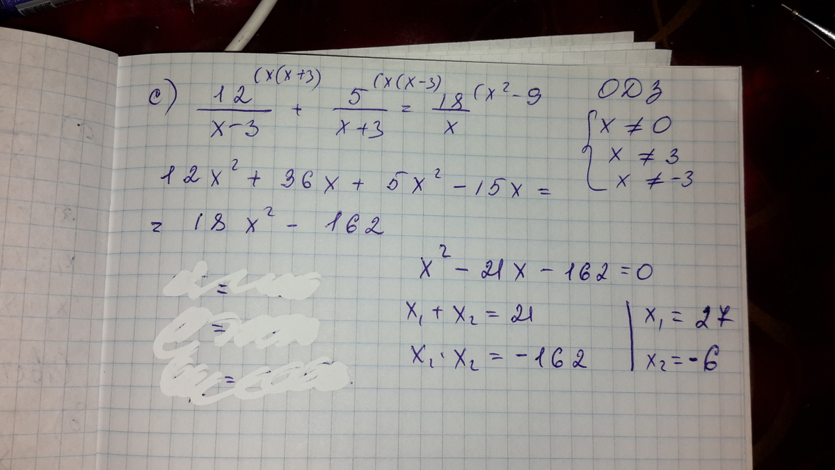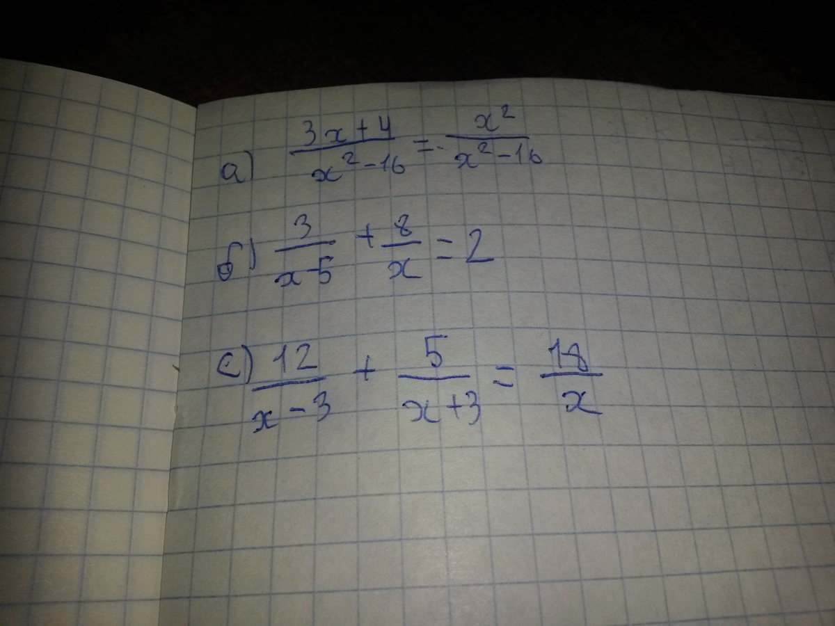 Знаменатели одинаковые, можно их просто не писать, дальше просто решаем квадратное уравнение
