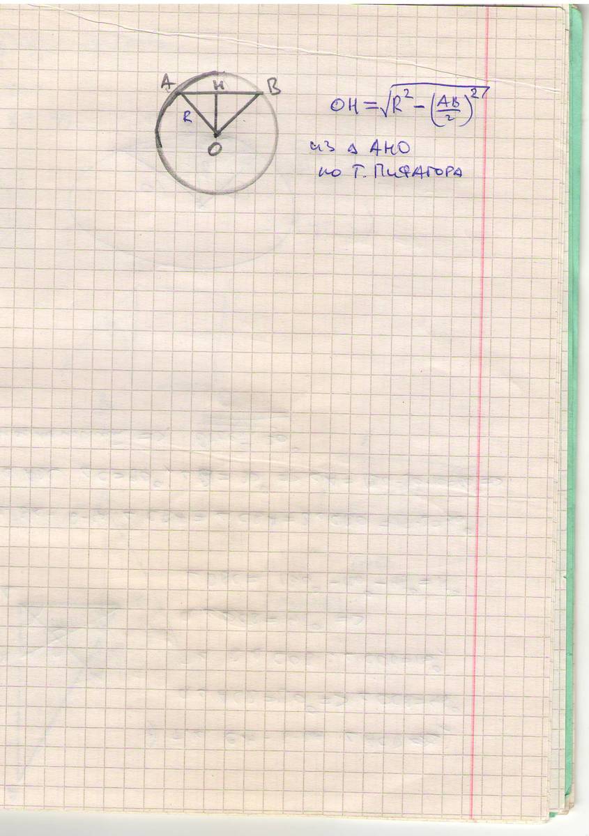 Точки А и В лежат на поверхности сферы радиуса 10 см. Если длина отрезка АВ равна 12 см, то расстояние от центра сферы к отрезку АВ равно: