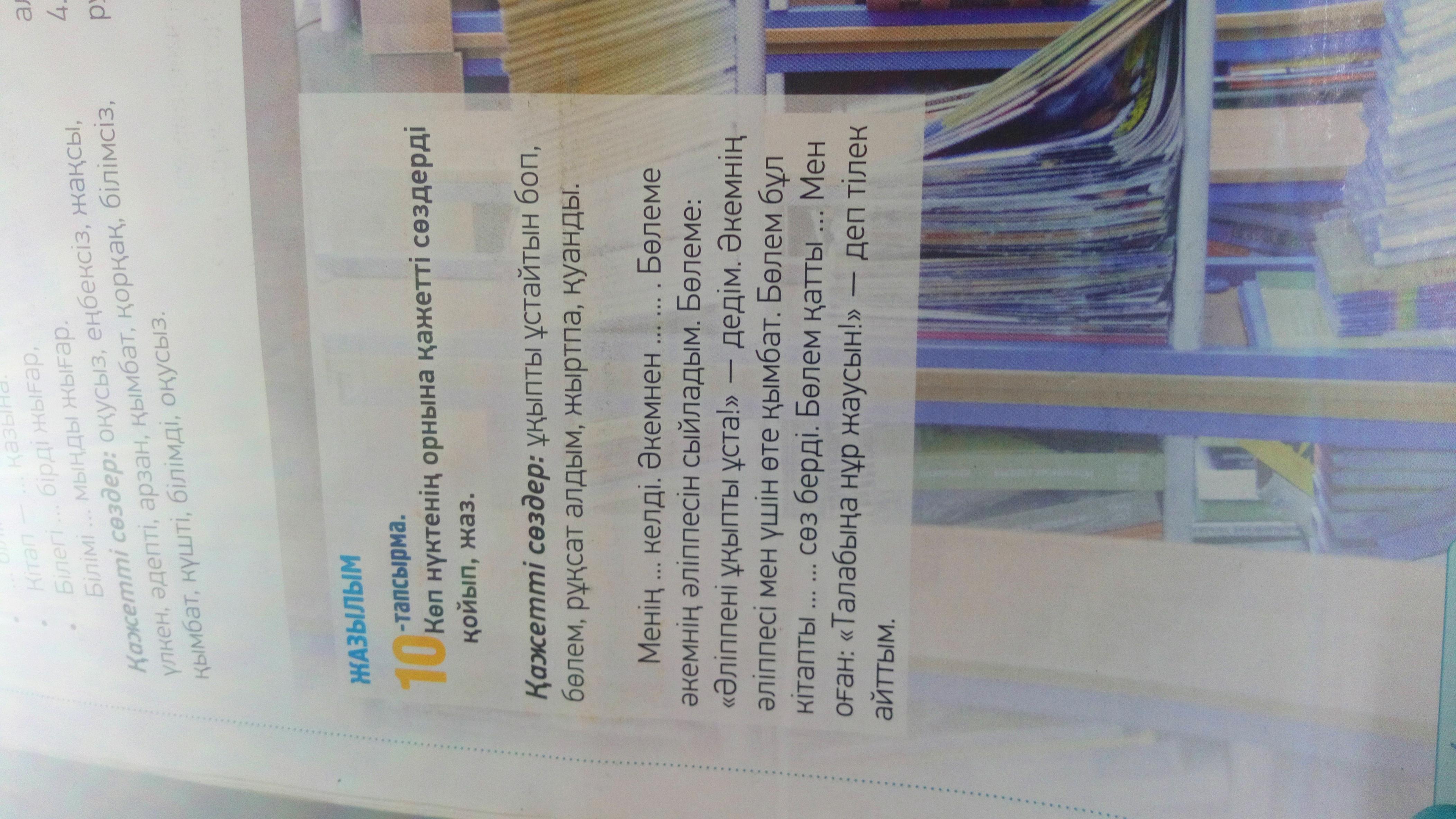 Қажетті сөздер:ұқыпты ұстайтын боп, бөлем, рұқсат алдым, жыртпа, қуанды.