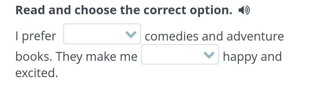 I prefer to read/reading comedies and adventure books. They make me feeling/feel happy and excited