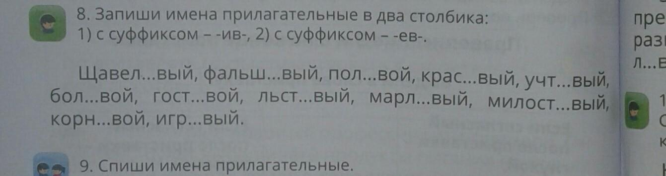 щавелевый,фальшивый,красивый, учтивый,болевой,гостевой,льстивый, марлевый,милостивый,корневой игривый