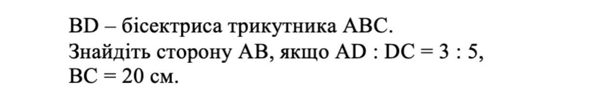 Знайдіть сторону AB, якщо AD : DC = 3 : 5,