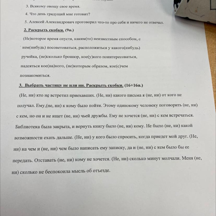 3. Выбрать частицу не или ни. Раскрыть скобки. (16+16п.)