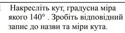Накресліть кут, градусна міра якого 140°. Зробіть відповідний запис до назви та міри кута.
