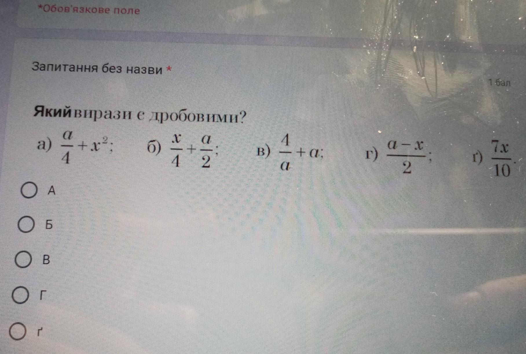 Дробові вирази обов'язково містять дію ділення на вираз зі змінною