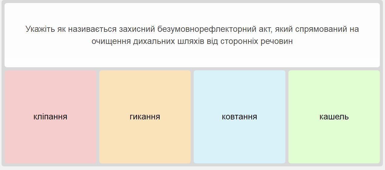 Укажіть як називається захисний безумовнорефлекторний акт, який спрямований на очищення дихальних шляхів від сторонніх речовин
