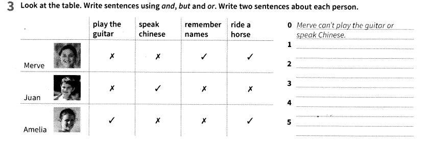 1. Juan can't play the guitar and remember names 2.Juan can speak Chinese or ride a horse