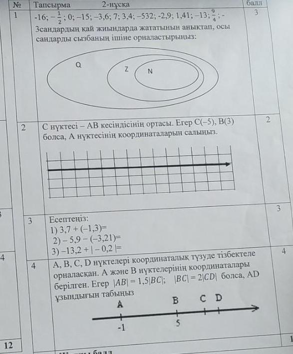 H 3)-13,2+1-0,2 = тiзбектеле A, B, C, D нүктелерi координаталык тузуде орналаскан. А және В нүктелерiнiн координаталары берілген. Егер (AB| = 1,5|BC]; |BC|= 2|CD болса, AD узындыгын табыңыз A B C D + -1 5 t