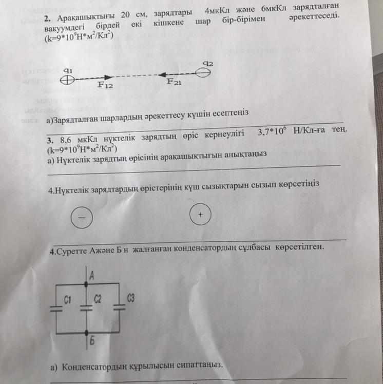Арақашықтығы 20 см,зарядтары 4мкКл және 6мкКл вакуумдегі бірдей екі кішкене шар бір-бірімен әрекеттеседі.