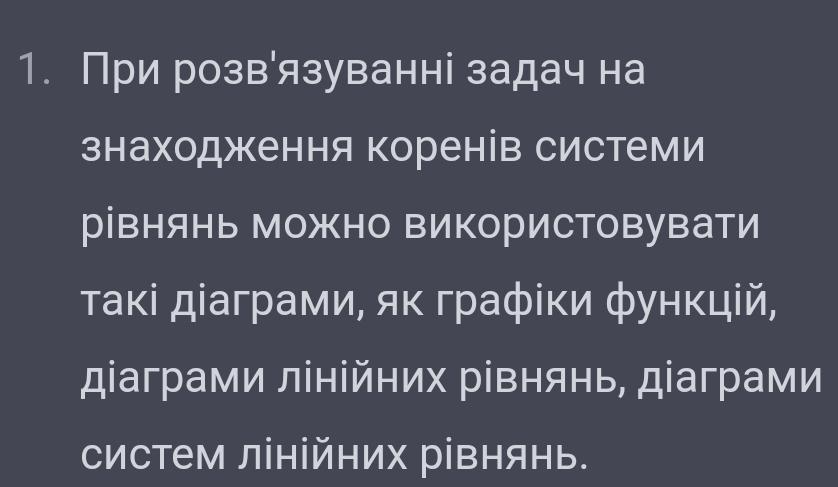 1. Які типи діаграм доцільно використовувати при розв’язуванні задач на знаходження коренів системи рівнянь?