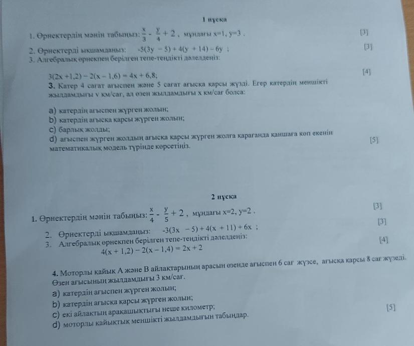 1. Өрнектердін мәнін табыныз: -- 2 + 2. мундагы х-1, у-3.