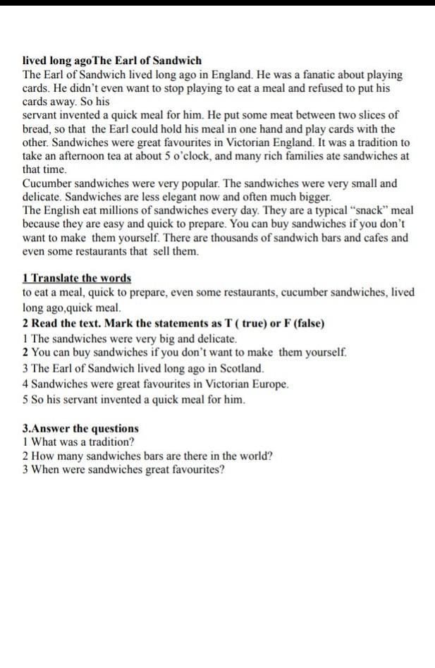 2 You can buy sandwiches if you don't want to make them yourself. - T 3 The Earl of Sandwich lived long ago in