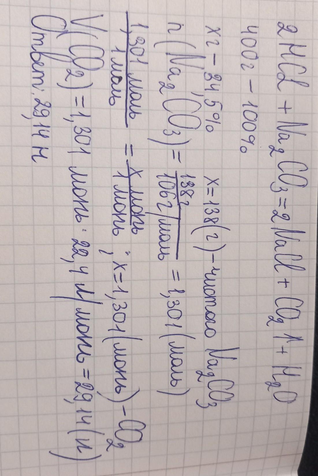 вычислить об'єм газу,що виділиться внаслідок дії надлишку хлоридної кислоти на розчин натрій карбонату масою 400г з масовою часткою 37.4%