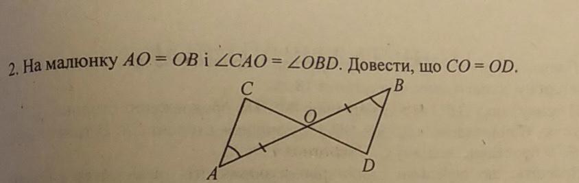 Угол COA и BOD равны как вертикальные.