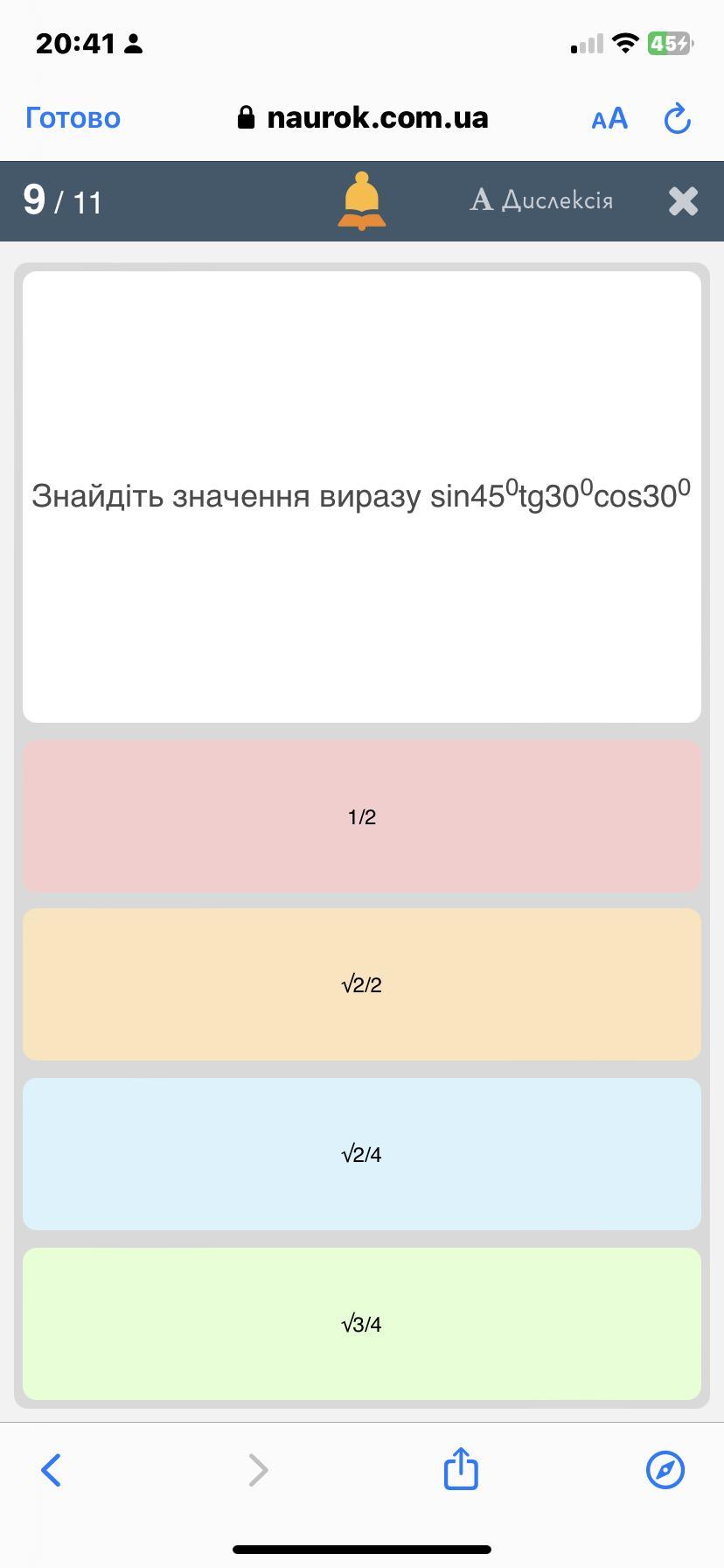 √2/2 * √3/3 * √3/2 = (√2*√3*√3) / (2*3*2) = (3√2) / (4*3) = √2 / 4