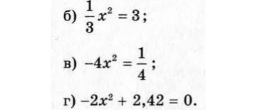 г)-2х²+2,42=0; -2х²=-2,42;х²=1,21; х1=-1,1;х2=1,1