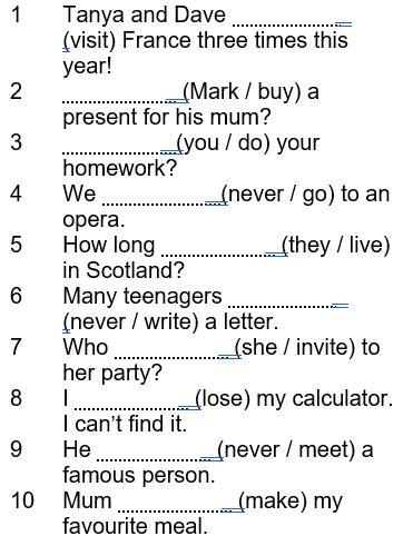 Complete the sentences with the Present perfect form of the verbs in brackets.