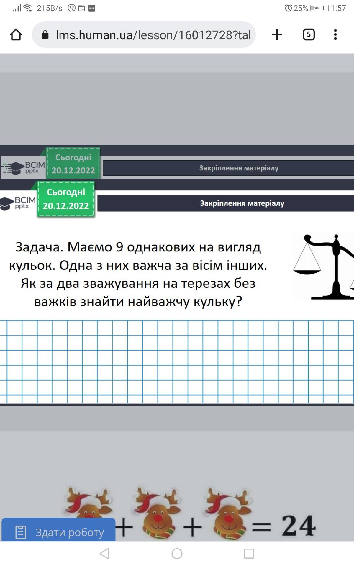 ділимо на 3 купки по 3 кульки. Порівньюємо дві купки з них. Тим самим з'ясовуємо в якій є важча кулька.