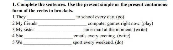 3. My sister is writing an e-mail at the moment.