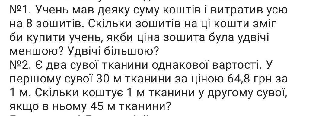 1) Якщо ціна у 2 рази менша, то зміг би купити 16 зошитів, якщо у 2 рази більша ціна, то купив би 4 зошити.