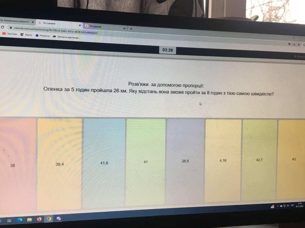 41,6 так как 26/5= 5,2 и 5,2×8 будет 41,6