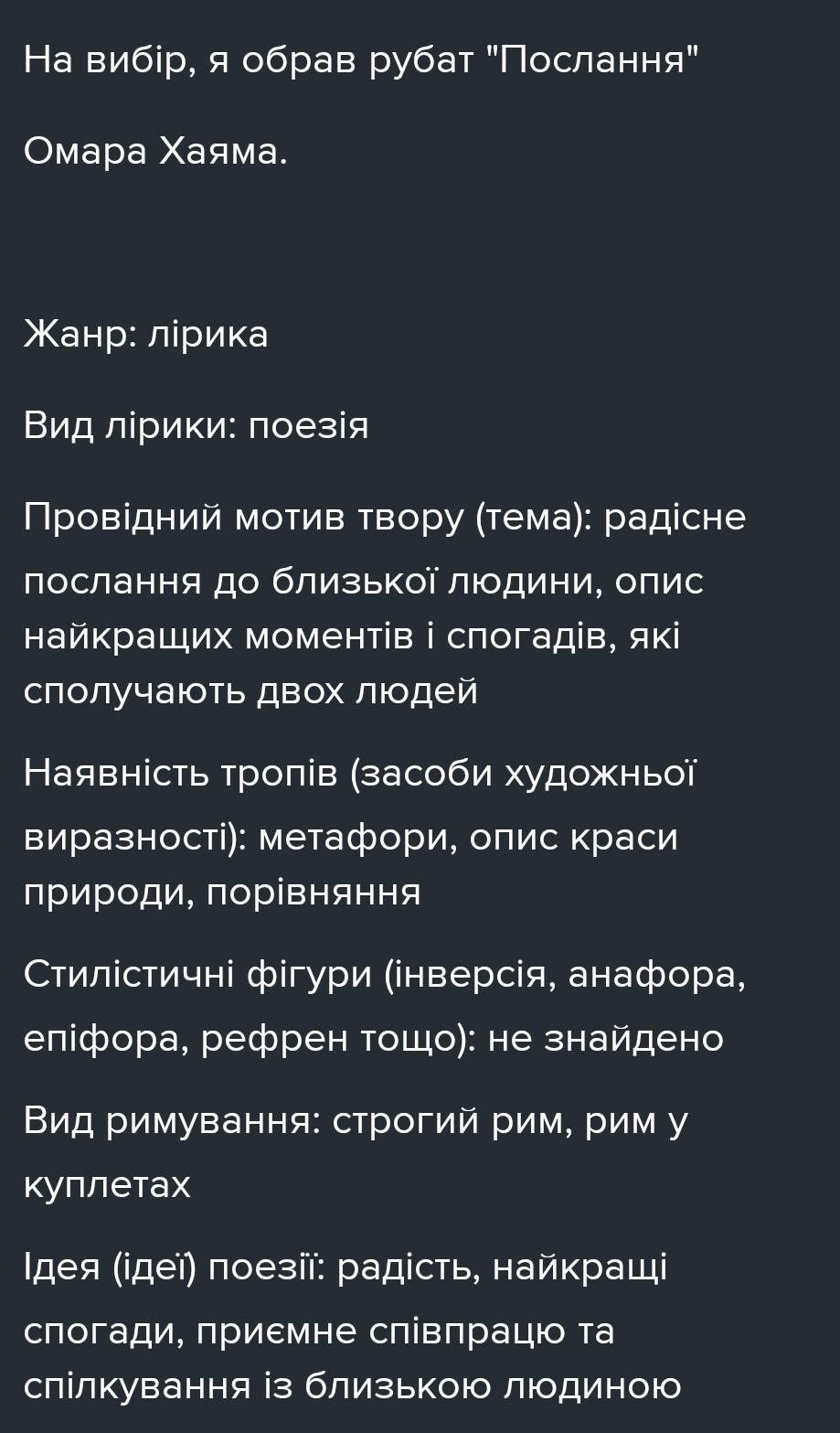 11. Проаналізуй рубат Омара Хаяма (одне на вибiр) за схемою. (3 6.)