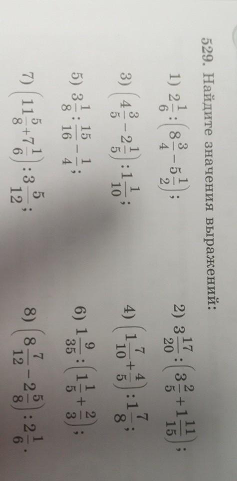 B Упражнения 529. Найдите значения выражений: 1) 21:(83-51); 6 4 700 3 (13 3) 4- 7) 5 5 15 5) 33116 11 8 4 11=+ :1 10 6 5 :3 ; 12 C 2) 317 :(32 +113); 20 15 7 4 7 4) 1 + :1 ; 10 5 8 9 6) 1 :|1 + ; 35 5 3 7 8) 8 2 12 - 8 :2 6