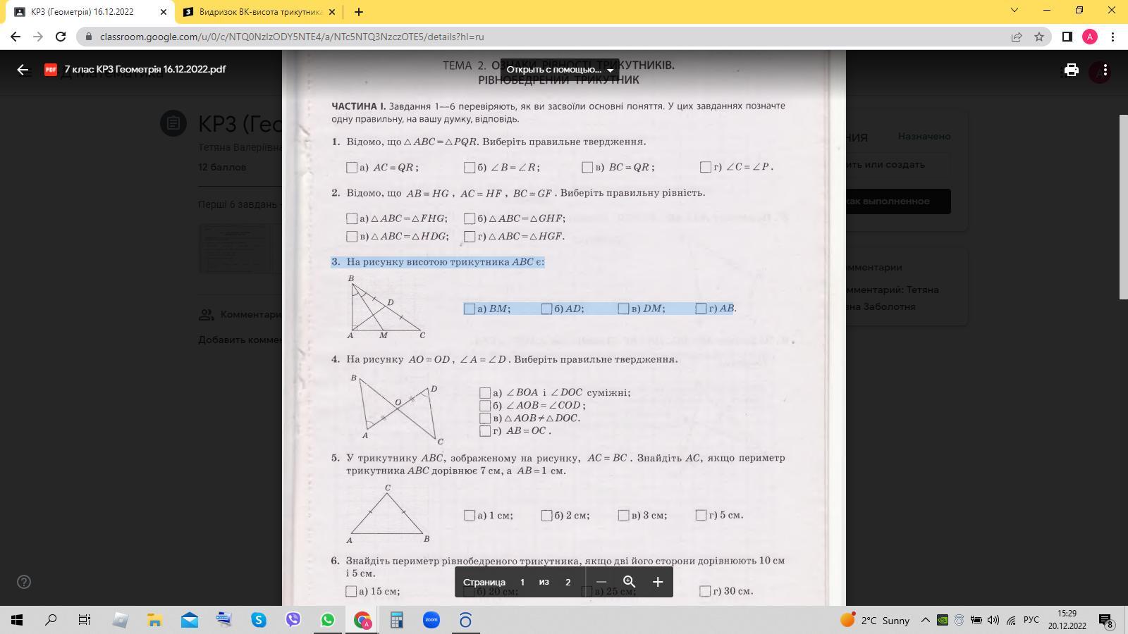 3. На рисунку висотою трикутника АВС є: