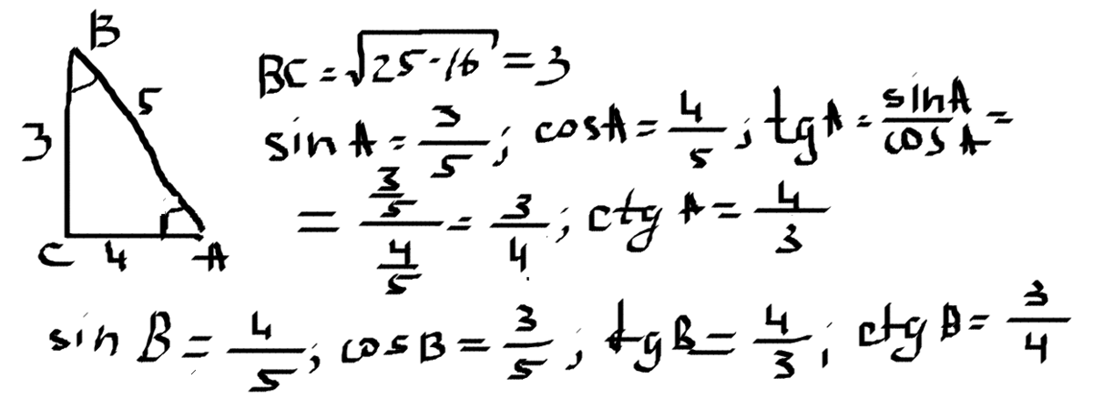 В треугольнике ABC угол C=90 градусов AC=4 см AB=5 см.Найдите sin a,cos a,tg a,sin b,cos b,tg b.