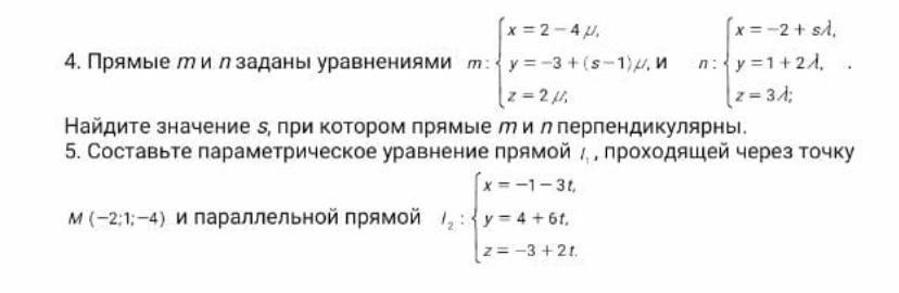 5. Составьте параметрическое уравнение прямой г , проходящей через точку